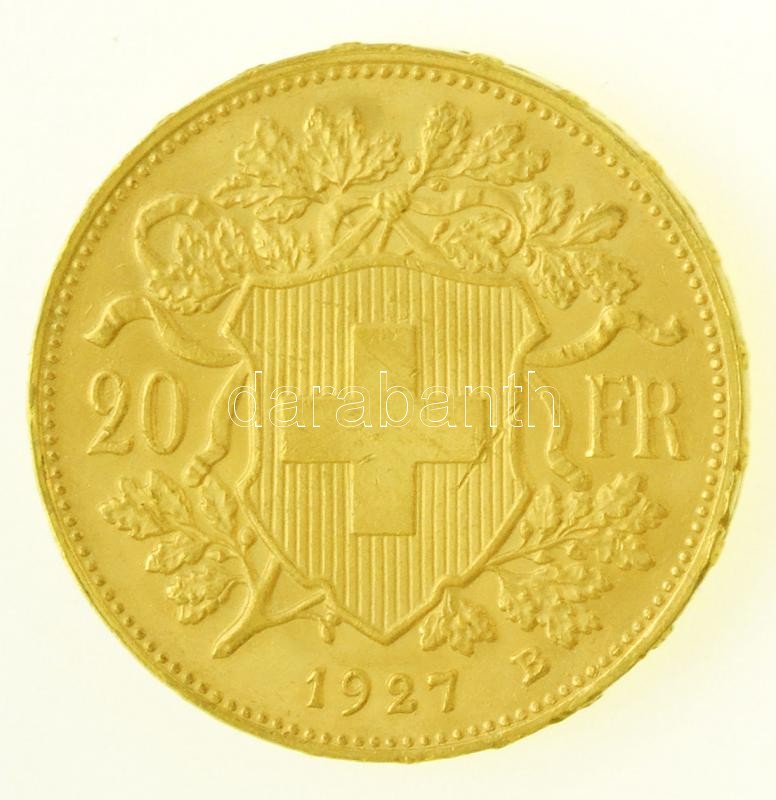 Switzerland 1927B 20... https://www.darabanth.com/hu/342-Gyorsarveres/342.0/Numizmatika/Magyar-es-kulfoldi-aranypenzek-es-emlekveretek~1500011/Svajc-1927B-20Fr-Au-6-45g0900-T1-kis-ph--Switzerland-1927B-20-Francs-6-45g0900-CAU-sm~II1894509