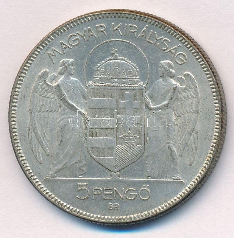 Leírás: 1930. 5P Ag "Horthy jobbra" T:2