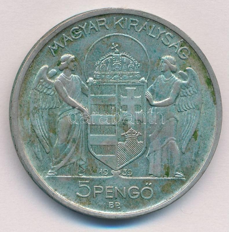 Leírás: 1939. 5P Ag "Horthy balra" T:2 patina