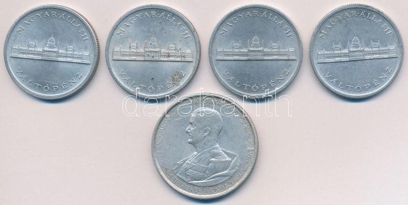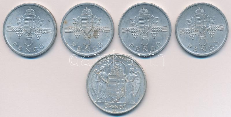 Leírás: 1943. 5P Al "Horthy Miklós születésének 75. évfordulója" + 1945. 5P Al "Parlament" (4x) T:2