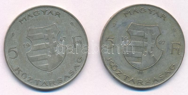 Leírás: 1947. 5Ft Ag "Kossuth" (2x) T:2-,3 patina