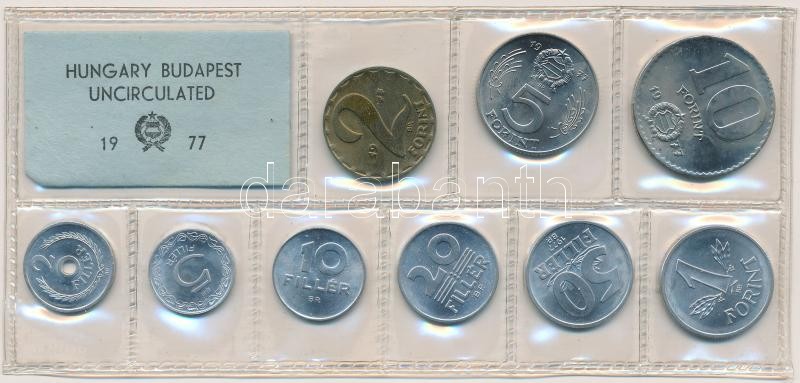 1977. 2f-10Ft (9xklf) érmés forgalmi sor fóliatokban T:1 Adamo FO10 https://www.darabanth.com/hu/342-Gyorsarveres/342.0/Numizmatika/Magyar-es-magyar-verdejelu-fem-es-ezustpenzek~1500008/1977-2f-10Ft-9xklf-ermes-forgalmi-sor-foliatokban-T1-Adamo-FO10~II1930538