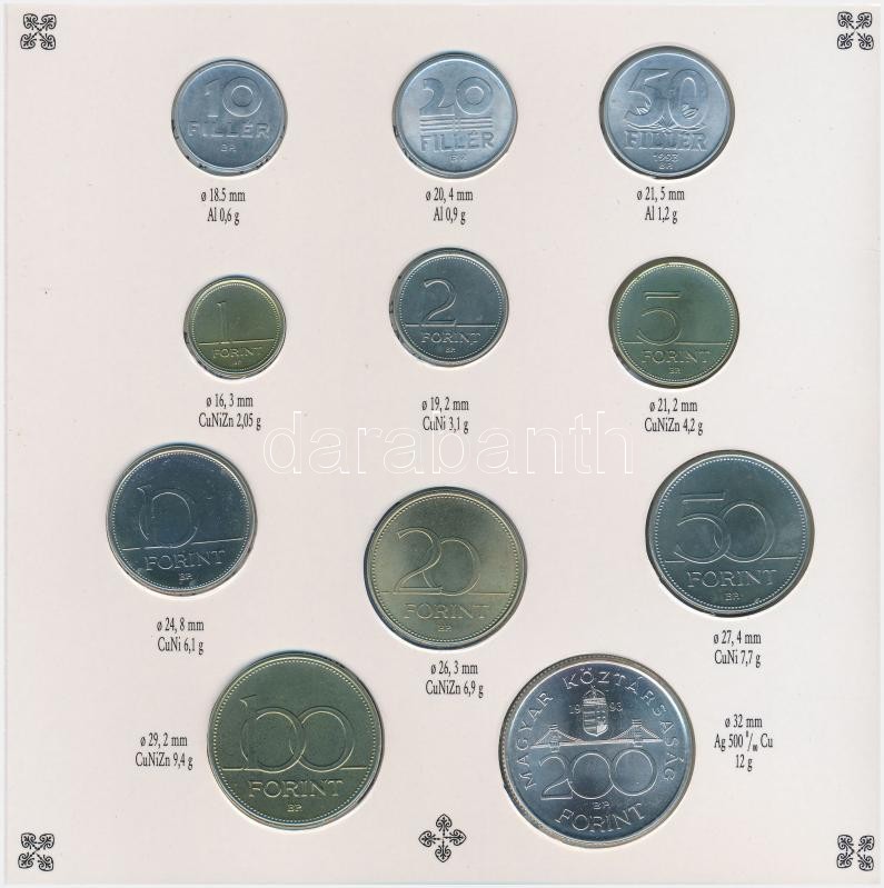 Leírás: 1993. 10f-200Ft (11xklf) forgalmi sor dísztokban, több lapos verzió, benne 200Ft Ag "MNB" T:BU