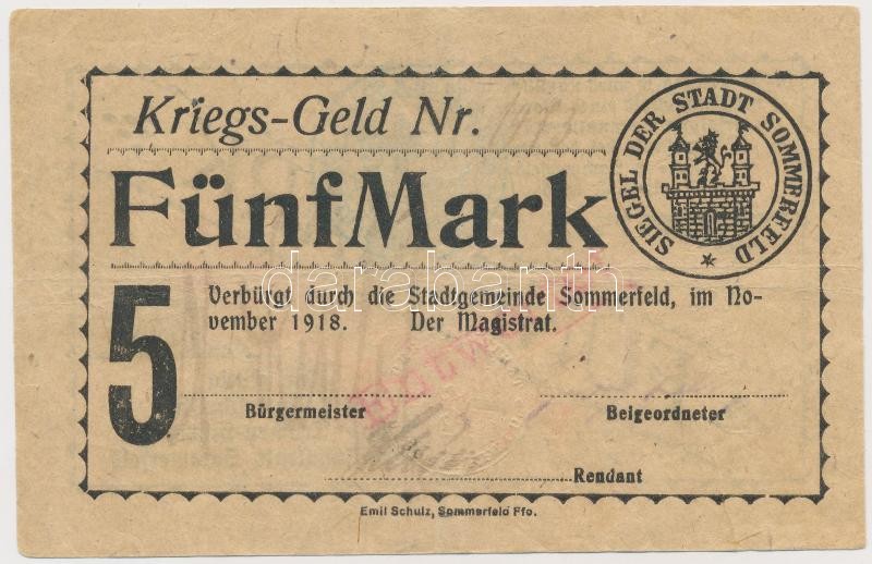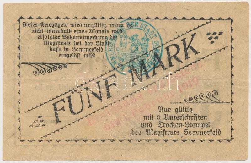 Leírás: Német Birodalom / Sommerfeld 1918. 5M szárazpecséttel, bélyegzésekkel T:III