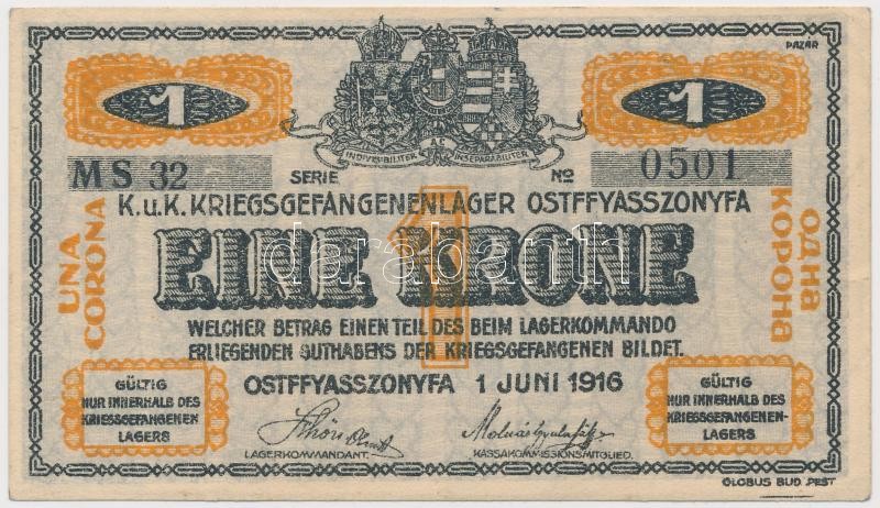 Leírás: Ostffyasszonyfa / hadifogolytábor 1916. június 1. 1K arab sorozat- és sorszámmal, "MS" jelzéssel T:I-