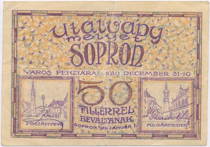 Adamo SOP-5.1.1 https://www.darabanth.com/hu/342-Gyorsarveres/342.0/Numizmatika/Papir-es-fem-szuksegpenzek~1500006/Sopron-1919-50f-utalvany-TIII-Adamo-SOP-511~II1926349