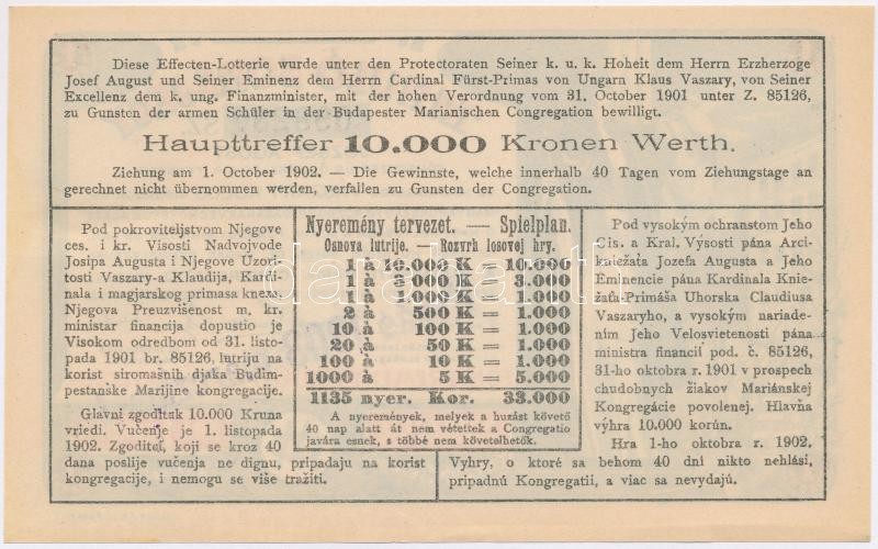 Leírás: Budapest 1903. "Tanuló Sorsjegy" 1K értékben, felülbélyegzéssel T:I-