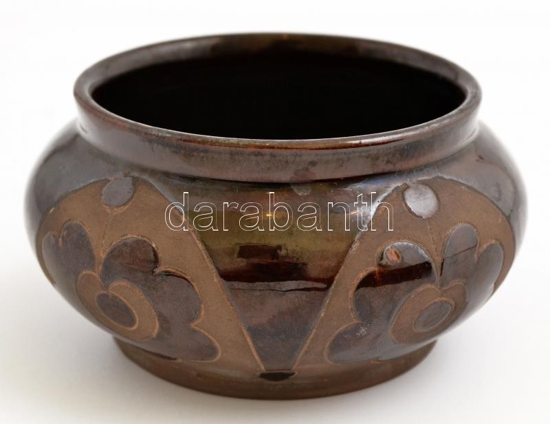 Leírás: Badár Balázs (1855-1938): Tálka. mázas kerámia. Jelzett. d: 10 cm