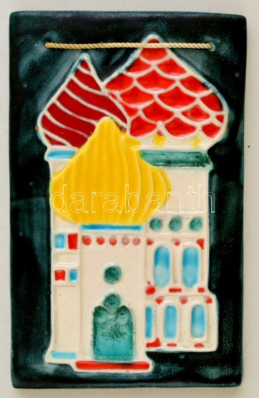 Leírás: Jelzés nélkül: Tornyok, mázas kerámia falikép, hibátlan, 21×12,5 cm