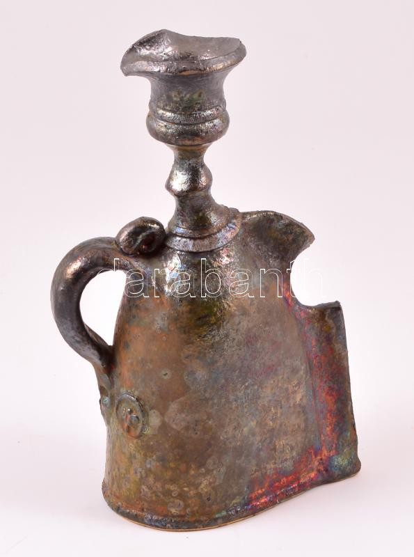 Leírás: Jelzett iparművész kerámia gyertyatartó pár 24 cm