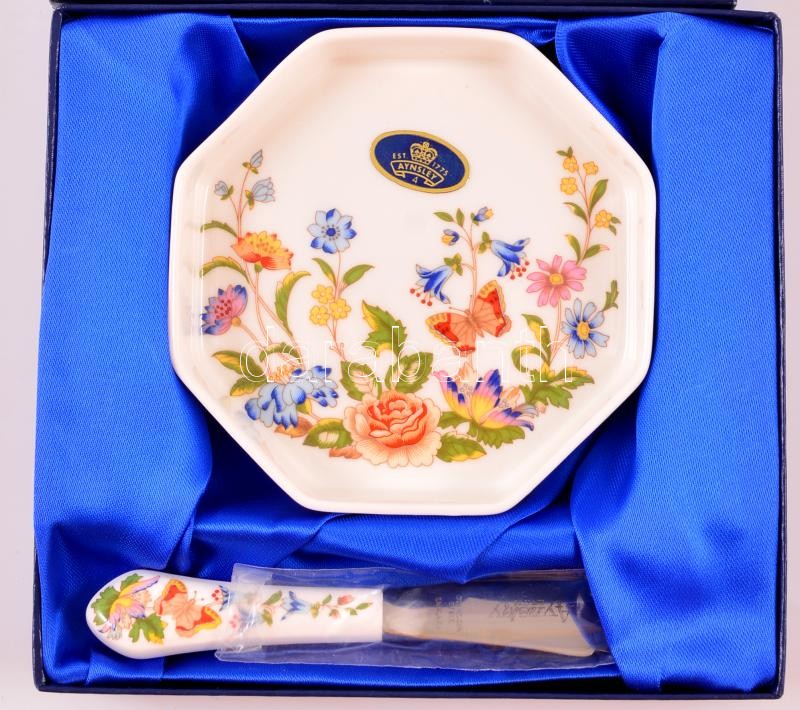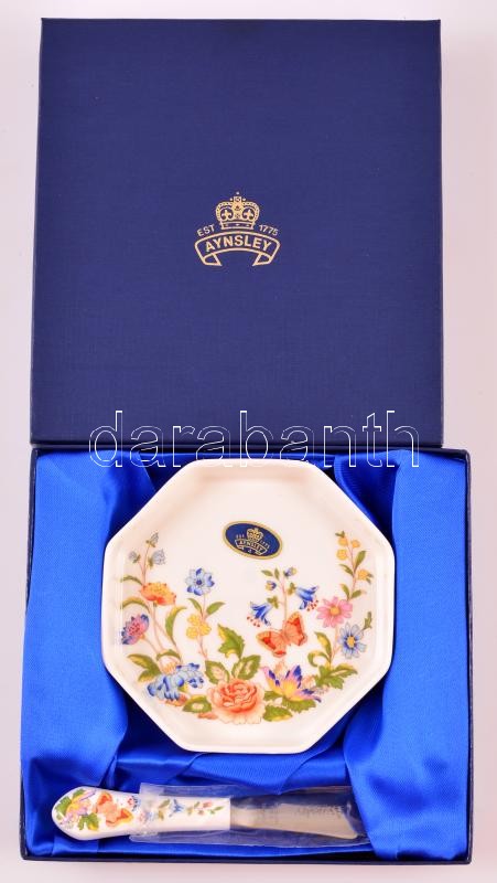 Leírás: Aynsley zsemlés tálka és vajazókés. Kézzel festett, jelzett, díszdobozban.