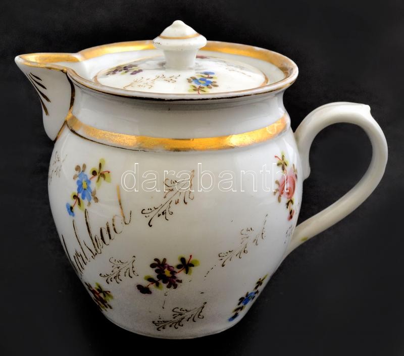 Leírás: "Carlsbad" porcelán emlék kiöntő, kézzel festett, jelzés nélkül, kopásnyomokkal, m: 10 cm