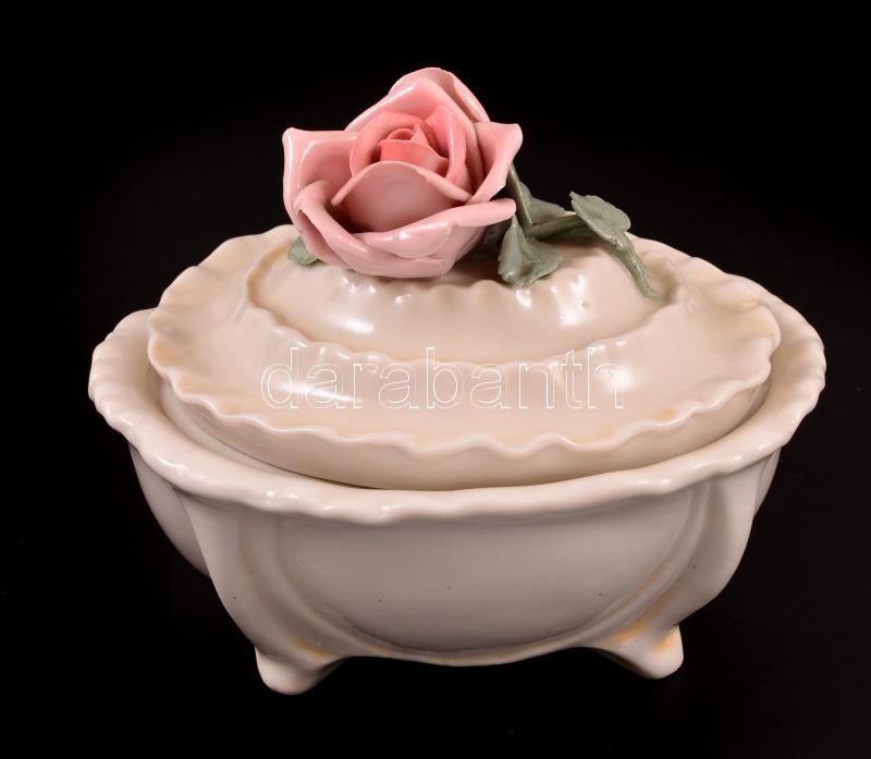 Leírás: Ens rózsás bonbonier, kézzel festett, apró lepattanásokkal, jelzett, 17×11 cm