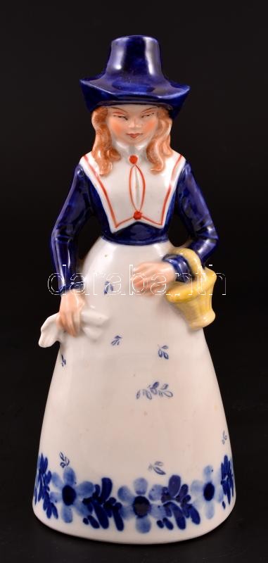 Leírás: GDR kézzel festett kalapos hölgy csengő 21 cm