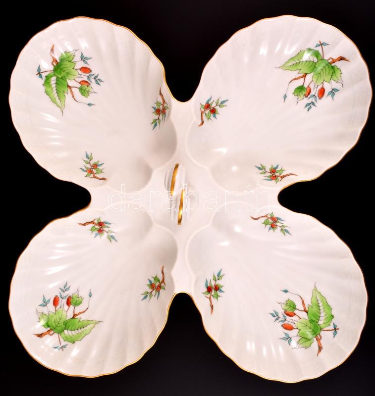 Leírás: Herendi csipkebogyó mintás négyes kínáló, kézzel festett, jelzett, hibátlan, 35,5×35,5 cm, m:11 cm