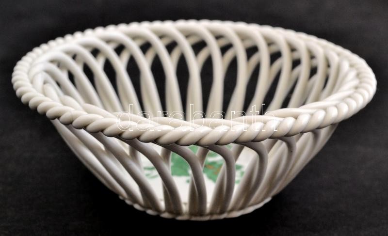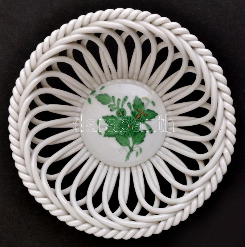 Leírás: Herendi fonott tál. d:12 cm. Kézzel festett, jelzett, hibátlan.