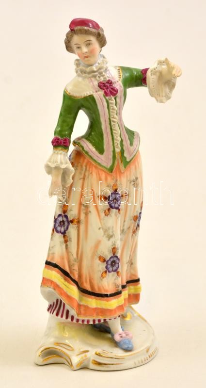 Leírás: Höchst hölgy, javított, jelzett, kézzel festett, kopott, m:19 cm