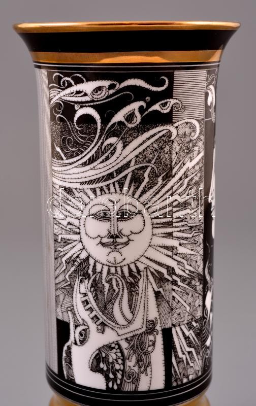 Leírás: Hollóházi Szász Endre tervezte váza, matricás, jelzett, apró kopásokkal, m: 20 cm