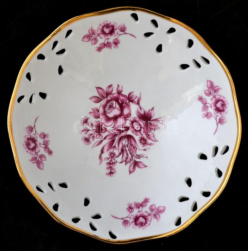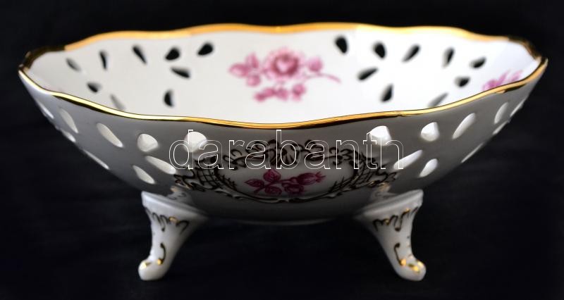 Leírás: Hollóházi lábas kínáló- Részben kézzel festett. jelzett, hibátlan. d:20 cm
