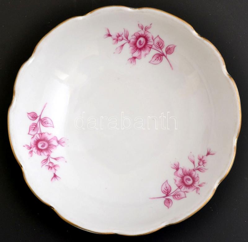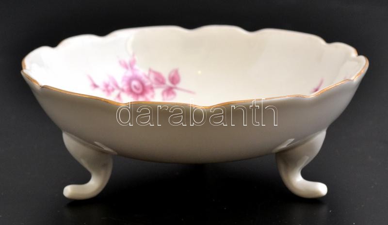 Leírás: Hollóházi lábas tálka, matricás, jelzett, apró kopás nyomokkal, d: 12 cm