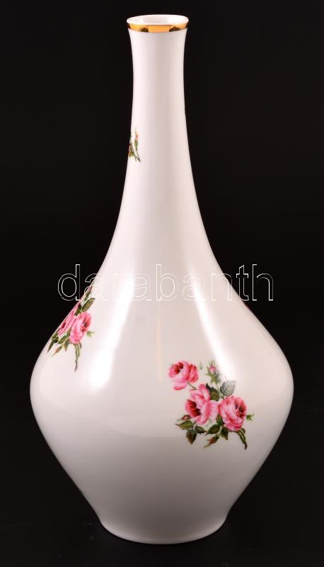 Leírás: Hollóházi rózsás váza, jelzett, matricás, hibátlan, m: 26 cm