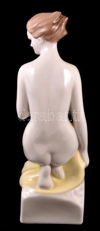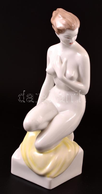 Leírás: Hollóházi térdelő akt, kézzel festett, jelzett, hibátlan, m: 31 cm
