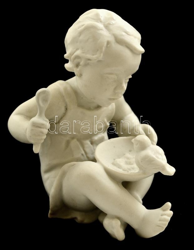 Leírás: Rosenthal kisfiú madárral, bisquit porcelán, jelzett, hibátlan, m: 11 cm
