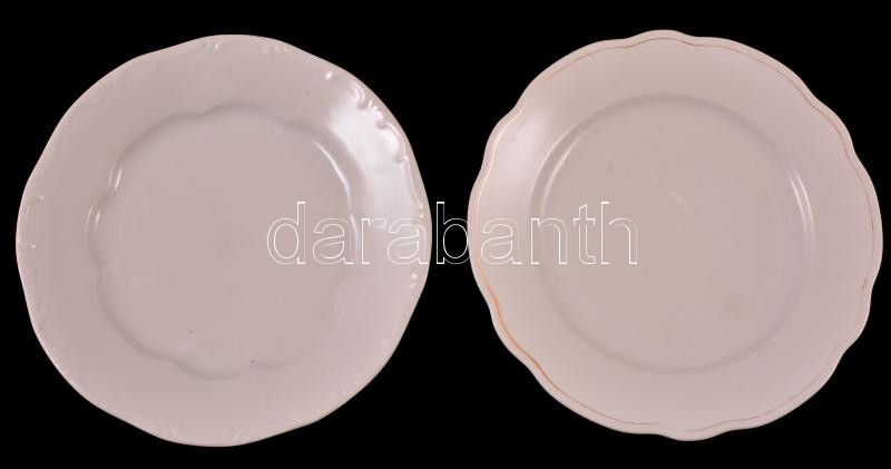 Leírás: Zsolnay porcelán lapos tányér, 2 db, jelzett, kopásnyomokkal, d: 24 cm