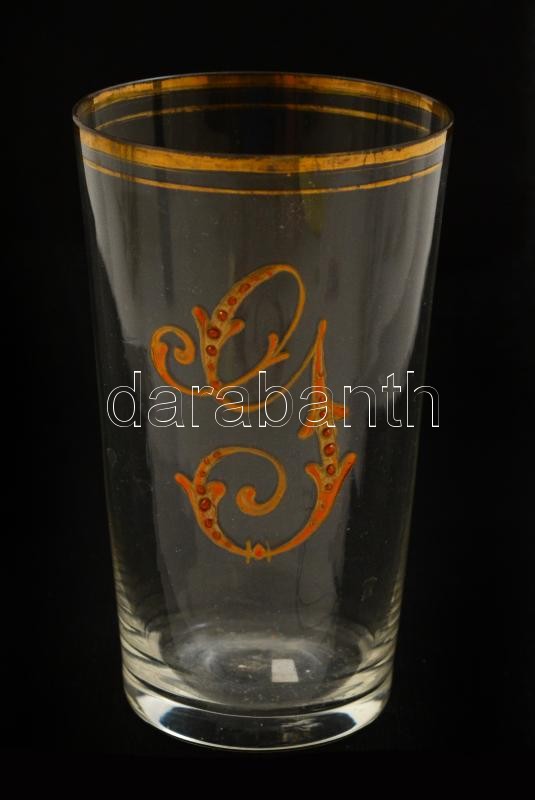 Leírás: Cca 1900 monogramos festett talpas pohár, m:14 cm