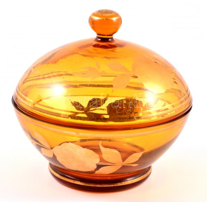 Dekoratív virágos színes üveg bonbonier, festett, kis csorbákkal, m: 1... https://www.darabanth.com/hu/342-Gyorsarveres/342.0/Porcelan-keramia-uveg/Uvegtargyak~500009/Dekorativ-viragos-szines-uveg-bonbonier-festett-kis-csorbakkal-m-15-5-cm~II1927964