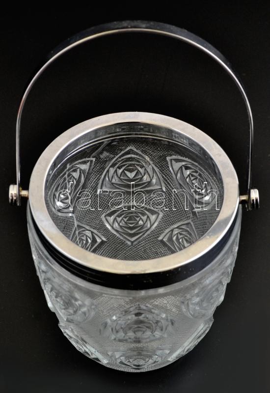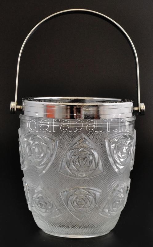 Leírás: Formába öntött üveg jegesvödör, fém rátéttem, d: 11 cm