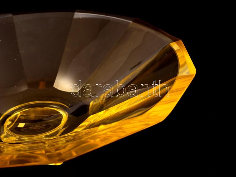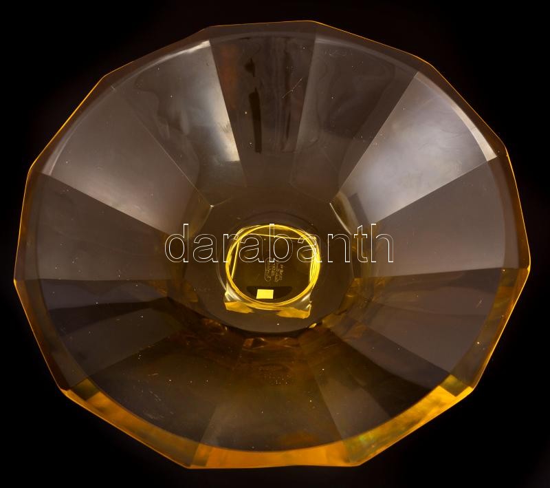 Leírás: Moser art deco kínáló tál, formába öntött, jelzett, alján karcolásokkal, csorba nélkül, m: 9,5 cm, d: 33 cm