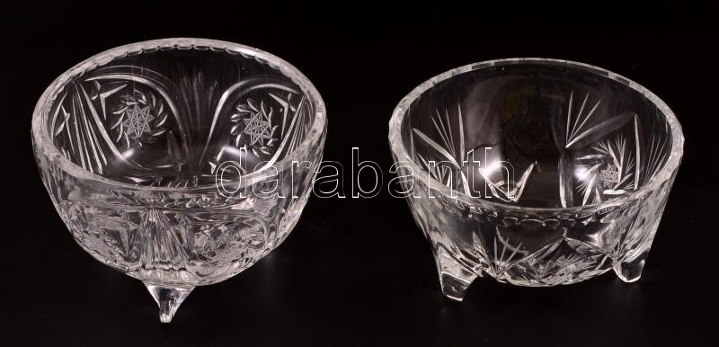 Leírás: Üveg kínáló, 2 db, metszett, apró hibákkal, d: 11,5 és 12 cm