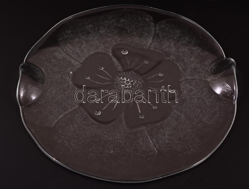 Leírás: Üveg kínáló tál virág dekorral d:30 cm