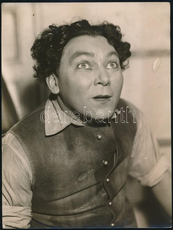Leírás: 1931 Kiss Ferenc (1893-1978) színész, érdemes művész fotója, hátoldalon feliratozott fotó, 24×18 cm