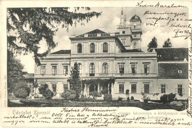 Leírás: 1901 Zirc, Őfelsége lakosztálya a királynapok alatt a zirci kolostorban. Kiadja Jófejű Lajos 328. (EK)