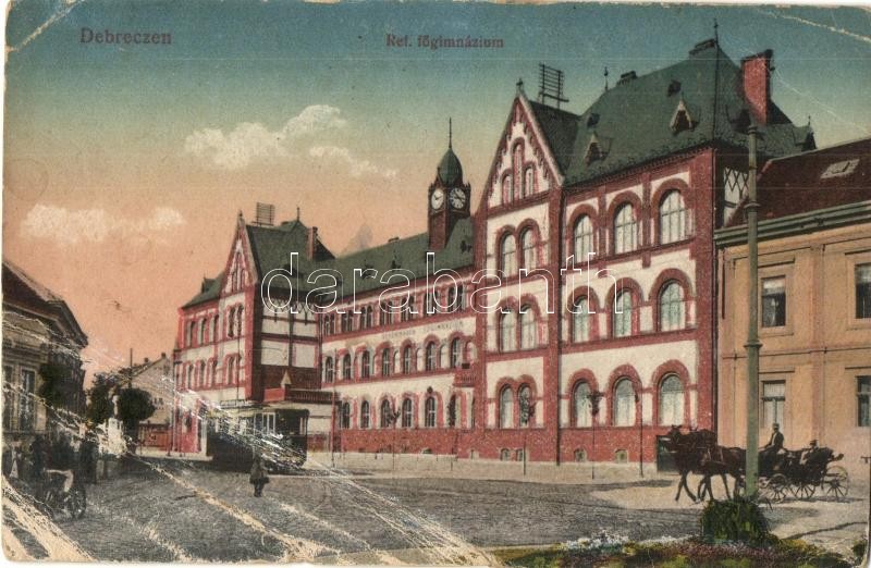 1922 Debrecen, Református gimnázium, villamos (EB) https://www.darabanth.com/hu/343-Gyorsarveres/343.0/Kepeslapok/Magyarorszag~2000008/1922-Debrecen-Reformatus-gimnazium-villamos-EB~II1937044