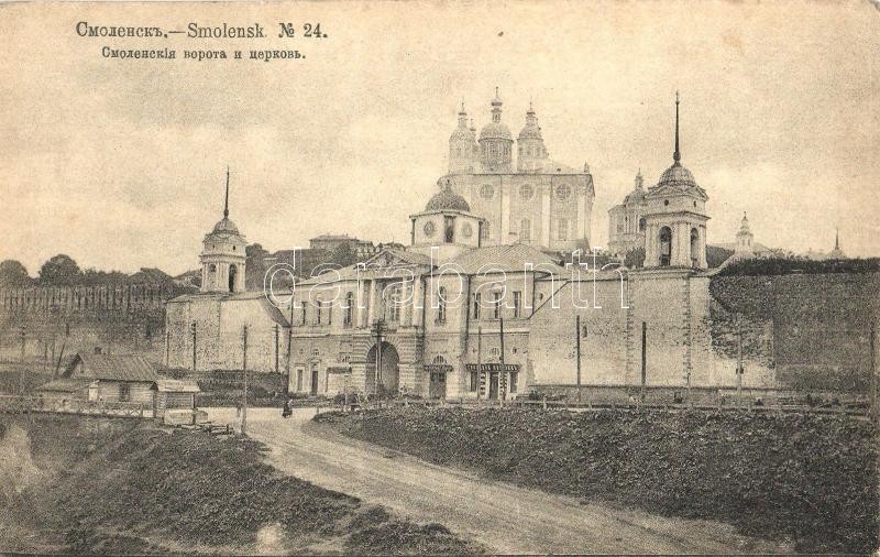 Smolensk, Smolensk Gate and Church (Smolensk Kremlin). Phototypie Sche... https://www.darabanth.com/hu/343-Gyorsarveres/343.0/Kepeslapok/Oroszorszag~2000042/Smolensk-Smolensk-Gate-and-Church-Smolensk-Kremlin-Phototypie-Scherer-Nabholz-Co~II1938562