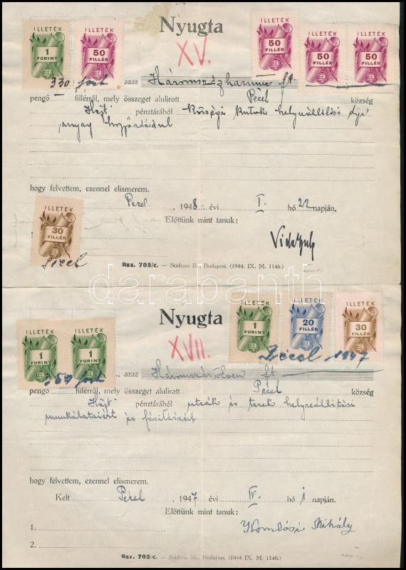 Leírás: 1947-48 2 db nyugta okmánybélyegekkel