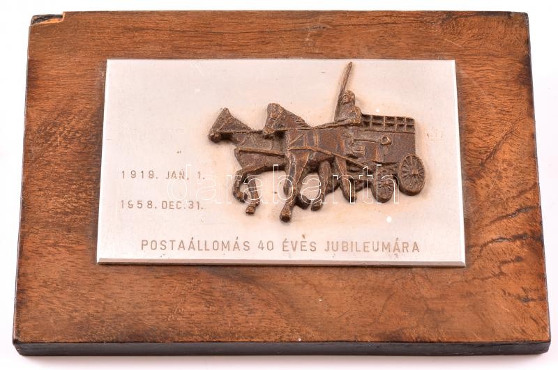 1959 Postaállomás 40 éves jubileumára plakett fa talapzaton 15x11 cm https://www.darabanth.com/hu/343-Gyorsarveres/343.0/Mutargy-papirregiseg-egyeb/Bolhapiac~500012/1959-Postaallomas-40-eves-jubileumara-plakett-fa-talapzaton-15x11-cm~II1937827