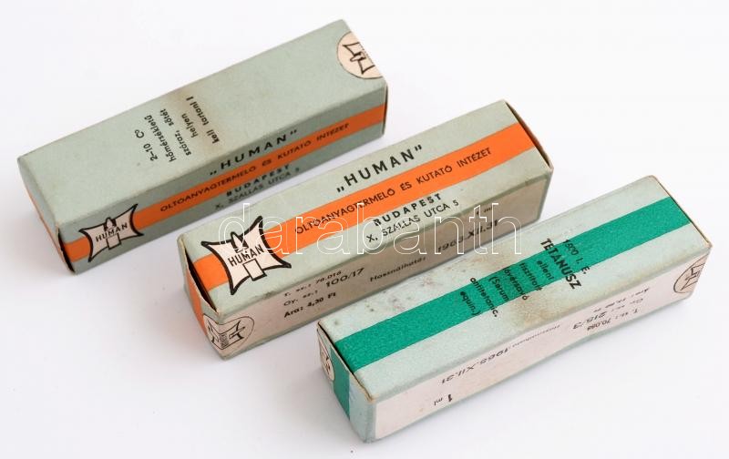 1963-1966 "Human" Oltóanyag és Kutató Intézet bontatlan tetanusz, 3 db https://www.darabanth.com/hu/343-Gyorsarveres/343.0/Mutargy-papirregiseg-egyeb/Bolhapiac~500012/1963-1966-Human-Oltoanyag-es-Kutato-Intezet-bontatlan-tetanusz-3-db~II1934891