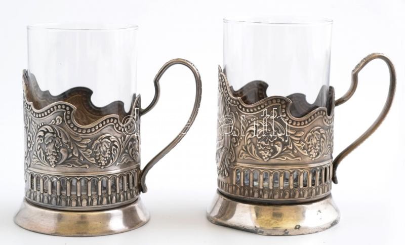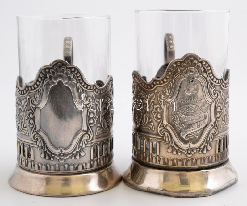 Leírás: 2 db retró fém szovjet pohártartó, üvegbetéttel, d: 6,5 cm