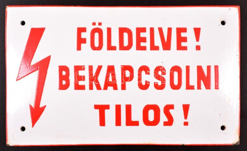"Földelve! Bekapcsolni tilos!" feliratú zománcozott fémtábla, kopásokk... https://www.darabanth.com/hu/343-Gyorsarveres/343.0/Mutargy-papirregiseg-egyeb/Bolhapiac~500012/Foldelve-Bekapcsolni-tilos-feliratu-zomancozott-femtabla-kopasokkal-12C39720-cm~II1935892