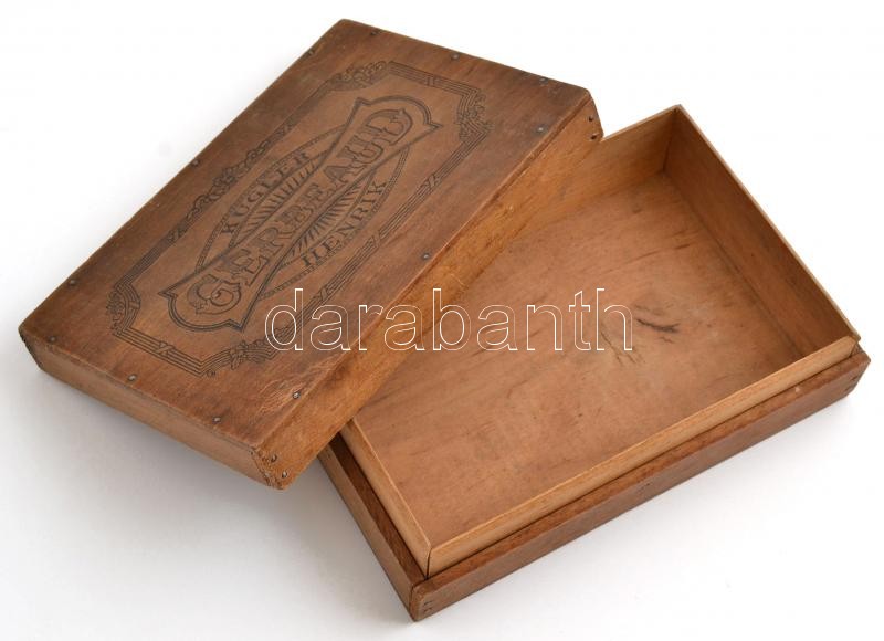 Gerbeaud fa doboz, 19,5×13,5×5,5 cm https://www.darabanth.com/hu/343-Gyorsarveres/343.0/Mutargy-papirregiseg-egyeb/Bolhapiac~500012/Gerbeaud-fa-doboz-19-5C39713-5C3975-5-cm~II1937267