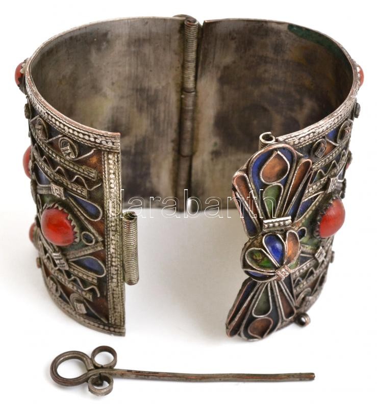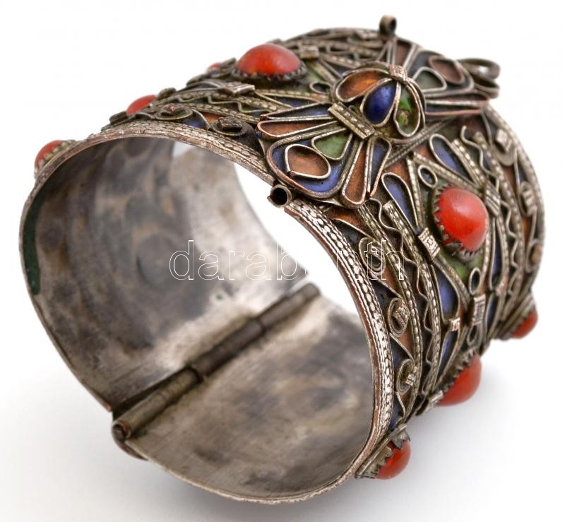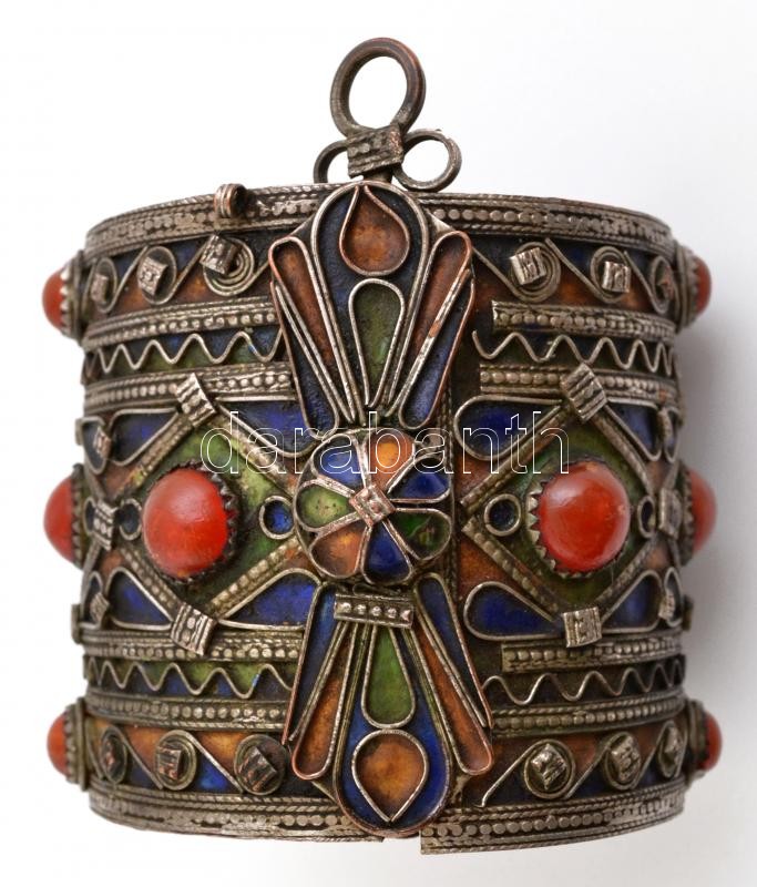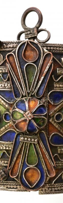 Leírás: cca 1900 rekeszzománc berakásos fém karcsat, jelzés nélkül, m:6,5 cm, belül: 8,8×5,7 cm