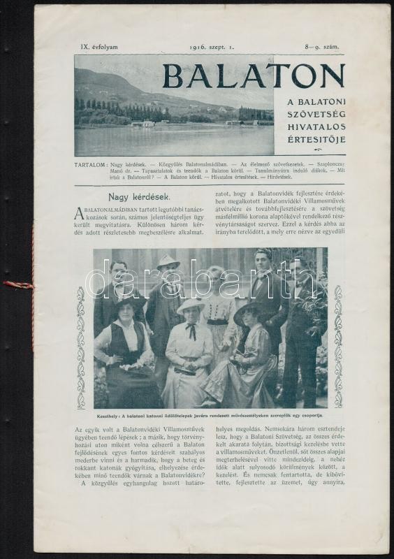 Leírás: 1916 Balaton, A Balatoni Szövetség hivatalos értesítője.ix. évf. 8-9 számai. Sok képpel és hirdetéss