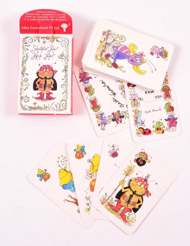 Leírás: Rádi Veronika által rajzolt Fekete Péter kártya 96/100. számozott példány