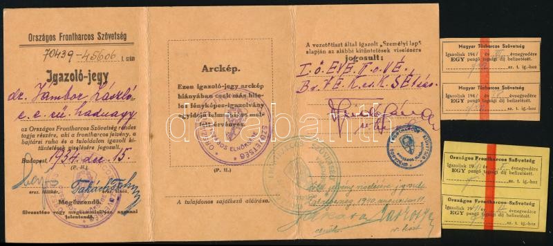 Leírás: 1917-1932 Katona kitüntetés igazolásai: I. és II. oszt vitézségi érem, Sebesültek érme, valamint Frontharcos szövetség igazolványa