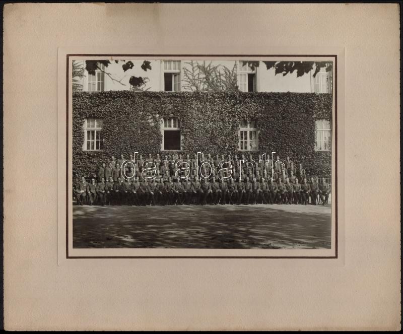 Leírás: 1943 A kőszegi főtiszti tanfolyam tanári kara és hallgatói, csoportkép, fotó Rimóczy János műterméből, kartonra kasírozva, 17×23 cm