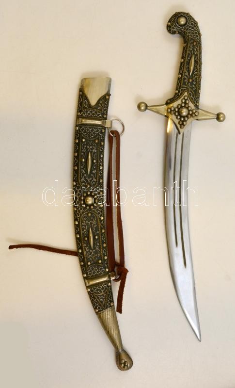 Leírás: Dísztőr, gazdagon díszített fém hüvelyben, h:50 cm, jelzés nélkül
